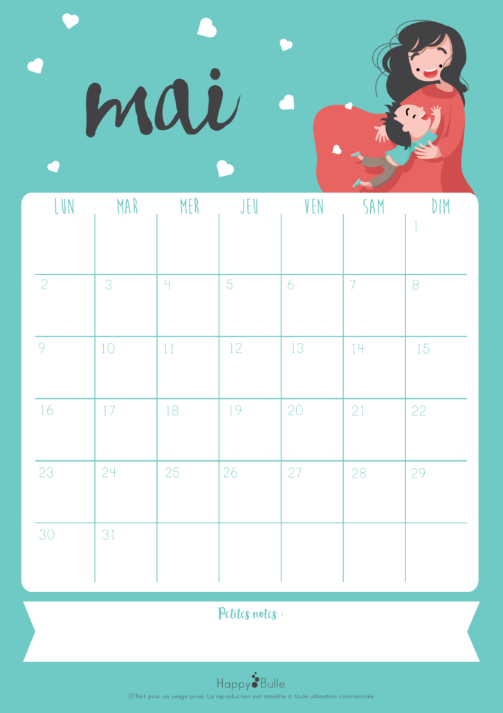 Alors, mieux vaut tard que jamais, le voici le joli calendrier du mois des mamans...