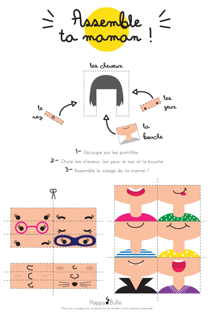 Si vos chères têtes blondes sèchent ou si vous avez tout simplement envie de passer un chouette moment avec eux, nous vous proposons aujourd'hui de télécharger le DIY de la fête des mères: ASSEMBLE TA MAMAN !