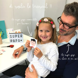 Louison s'est prêtée au jeu pour vous. Elle s'est bien appliquée, et avait une idée très arrêtée de "son" papa en papier! Je vous laisse découvrir les photos (avec en guest star Môsieur HappyBulle en personne qui m'a cédé ses droit à l'image pour promouvoir cet article !!!)