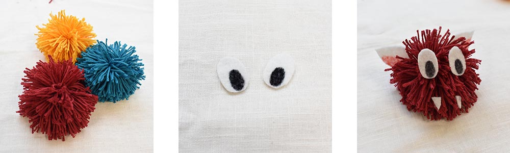 - de la feutrine pour créer les yeux, cornes, bouches etc. de vos petits monstres (vous pouvez également utiliser des yeux mobiles autocollants)