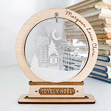 Craquez pour notre boule à neige en bois et acrylique. Avec ses décors de Noël féériques elle égayera votre cheminée par exemple ou bien le pied de votre sapin. Une chose est sûre, elle donnera le ton de ces fêtes de fin d'année ! Ces boules à neige à personnaliser feront le bonheur des petits et des plus grands. Personnalisez-les avec les textes de votre choix (deux zones à personnaliser) : votre nom et les prénoms de tous les membres de la famille, une date, un message, à vous de décider !
