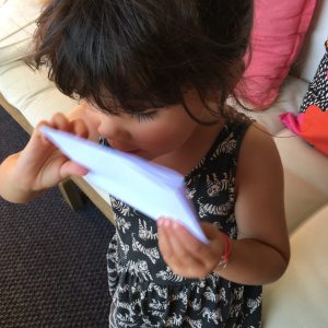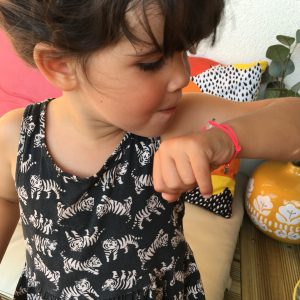 Depuis le bracelet Bisou est un peu notre rituel à toutes les 2. Elle me demande de le "recharger" en bisous tous les matins et le soir avant de se coucher... Moi je fonds!