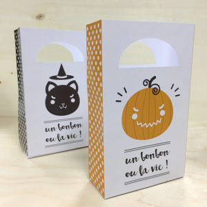 Je vous propose donc un DIY facile et ludique pour faire patienter vos loustics jusqu’au grand jour et les occuper pendant les vacances d’automne : un joli print gratuit à imprimer à la maison pour confectionner leurs sacs à bonbons.