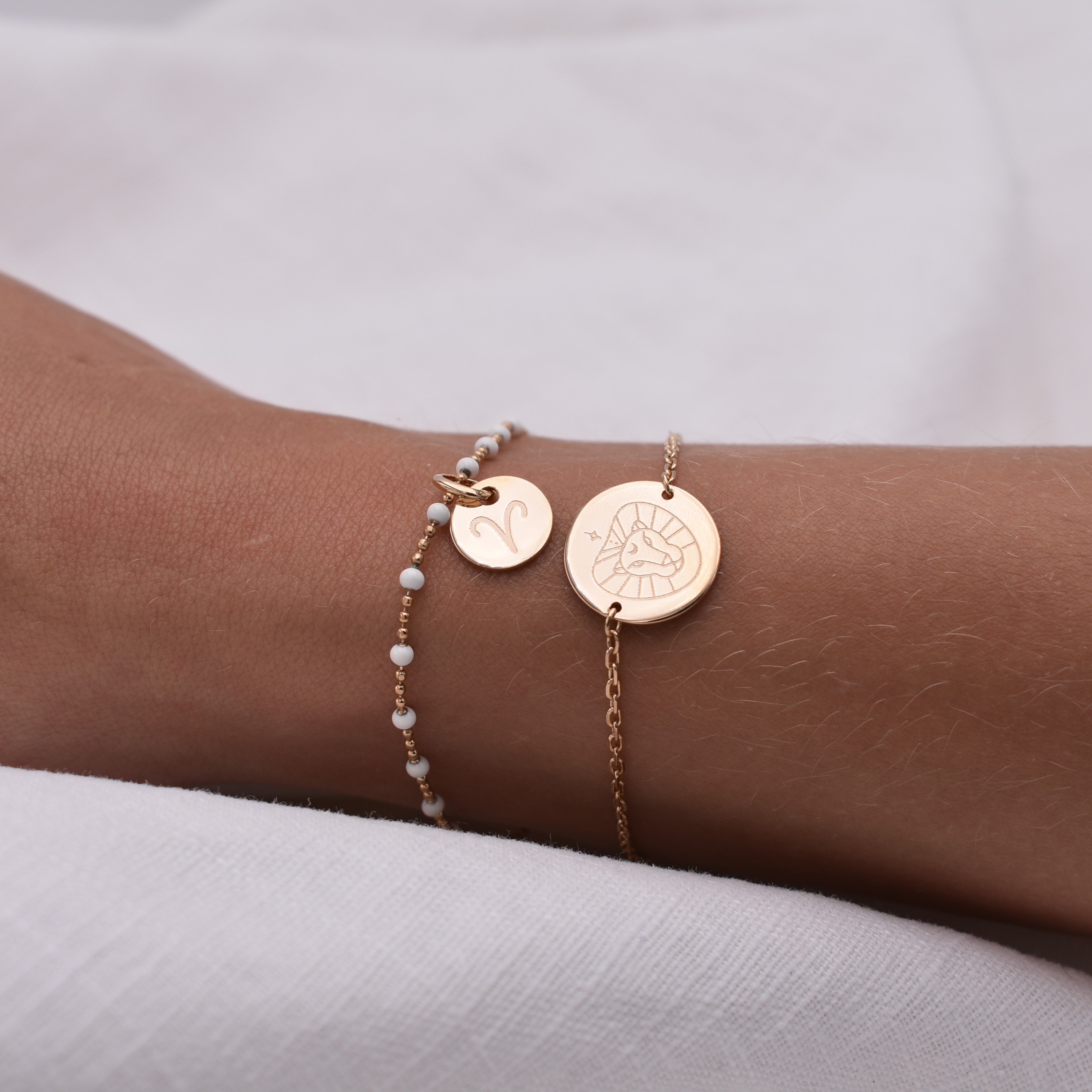 Un bijou personnalisé signe astrologique fera plaisir à la plupart des jeunes filles. Tendance, la gravure signe astro représente avec style l'identité de chacun. Son bijou pourra accompagner toutes ses tenues au quotidien en lui permettant d’affirmer sa personnalité et en dévoilant qui elle est. En bonus, associez plusieurs bracelets comme un bracelet chaîne avec une gravure illustrée de son signe et un délicat bracelet perles colorées avec une mini médaille de 10 mm en gravant le symbole du signe astrologique associé pour créer une composition de bracelets dont elle ne se passera plus !