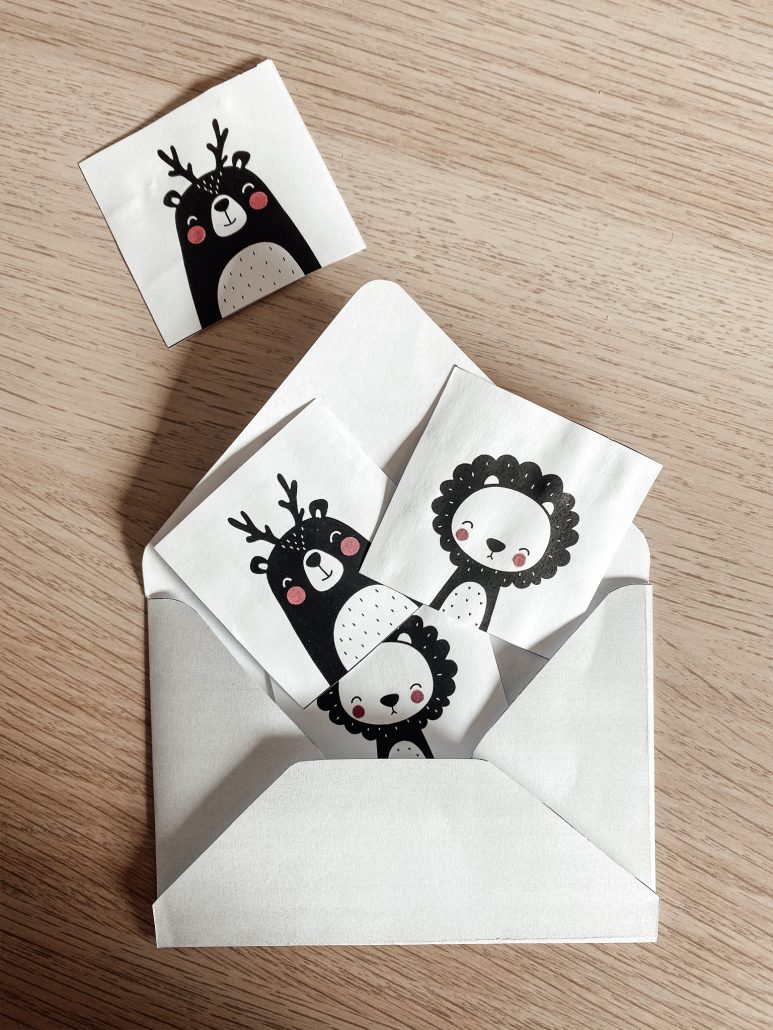 On vous a aussi préparé un printable avec une petite enveloppe afin de conserver vos petits carrés! Là aussi c'est très simple, on imprime, on découpe, on plie. Un ou deux petits points de colle et c'est parti !