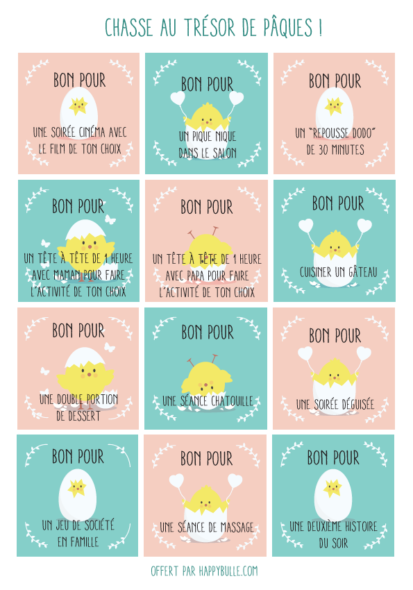 Et pas n'importe quels trésors! L'idée est de faire trouver à vos loulous des petits "BON POUR...", des vrais petits cadeaux avec ce qui les motivent et les rend heureux!