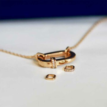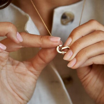 Al centro di questo concetto, c'è un moschettone delicato e raffinato che simboleggia il legame e la trasmissione. A esso si aggiungono dei charms, come tanti ricordi preziosi: una nascita, un matrimonio, un incontro indimenticabile... Ogni ciondolo diventa testimone di un momento significativo e racconta una parte della tua storia.